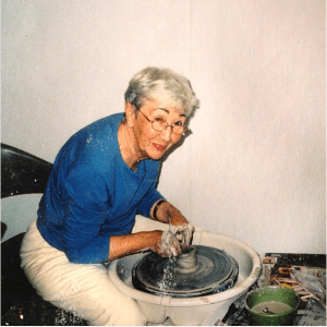 I felt at home in her home. A modest, comfortable single level home in what is now a very expensive California suburb, but then seemed very quiet and ordinary. It was decorated with a hodgepodge of old furniture acquired from decades of family, antiques that fascinated me, dozens of photographs spanning the entire family tree, and evidence of all her travels around the world and her hundreds of artistic experiments. There was a small kiln in her house and a big one in her garage. There were plastic tubes filled with colorful beads on every table. Paintings in a bold, abstract style with five-inch-wide brush strokes in electric colors. Paintings in delicate watercolor. Explosions of oil-painted flowers. A delicate pencil drawing. A finely detailed etching. Ceramic pots and vases displaying hand-formed, porcelain calla lilies. Clay faces and silver jewelry hanging from corners or framed in shadowboxes and displayed on the wall.